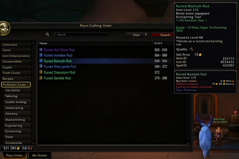 • Crafting: Alchemy (fast turnover), Jewelcrafting (high profit margin), Enchanting (steady market).